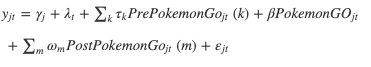 - Post-PokemonGo:地域j でのゲーム発売から介入後 t 週までの期間が m 週である場合に 1 に等しくなる指標