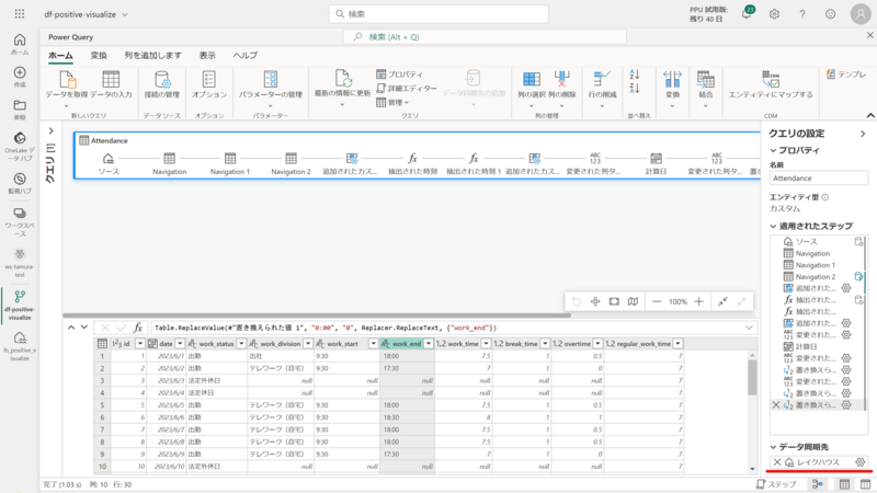 ノートブックと異なり、コード(Power Query)を記述できなくとも GUI 上の操作で基本的なデータの変換・加工が可能です。