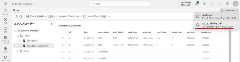 - レイクハウスから SQL エンドポイントを作成し分析を実施する