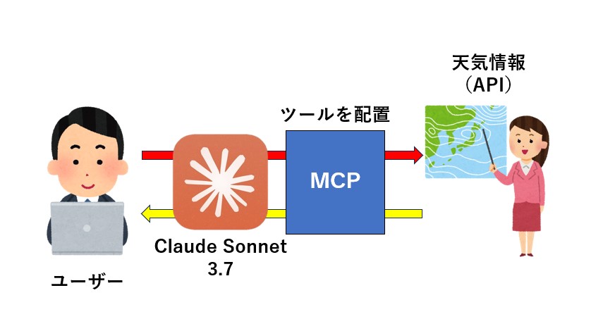 このアプリからMCPサーバーにアクセスし、天気の情報を取得するような構成です。