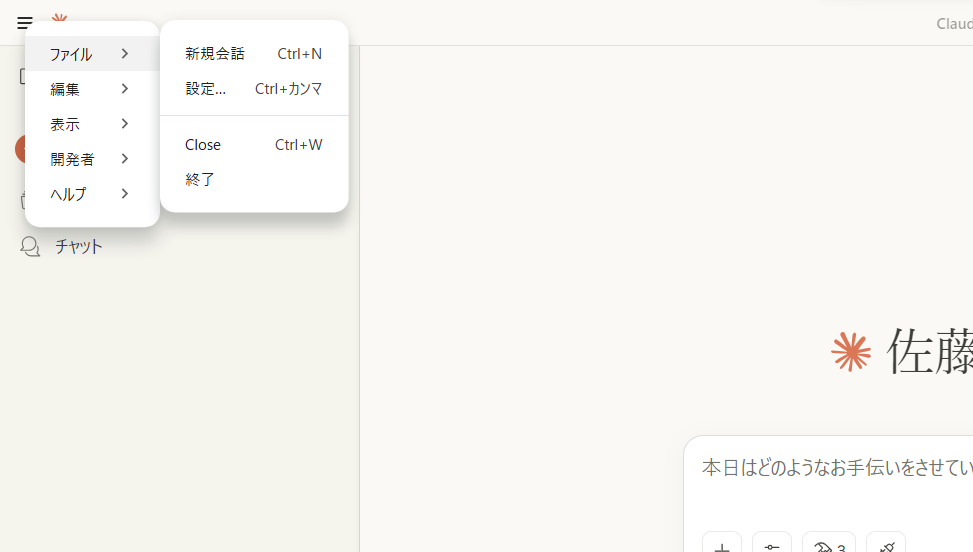 ClaudeDesktopのインストールとサインインをあらかじめしておきます。