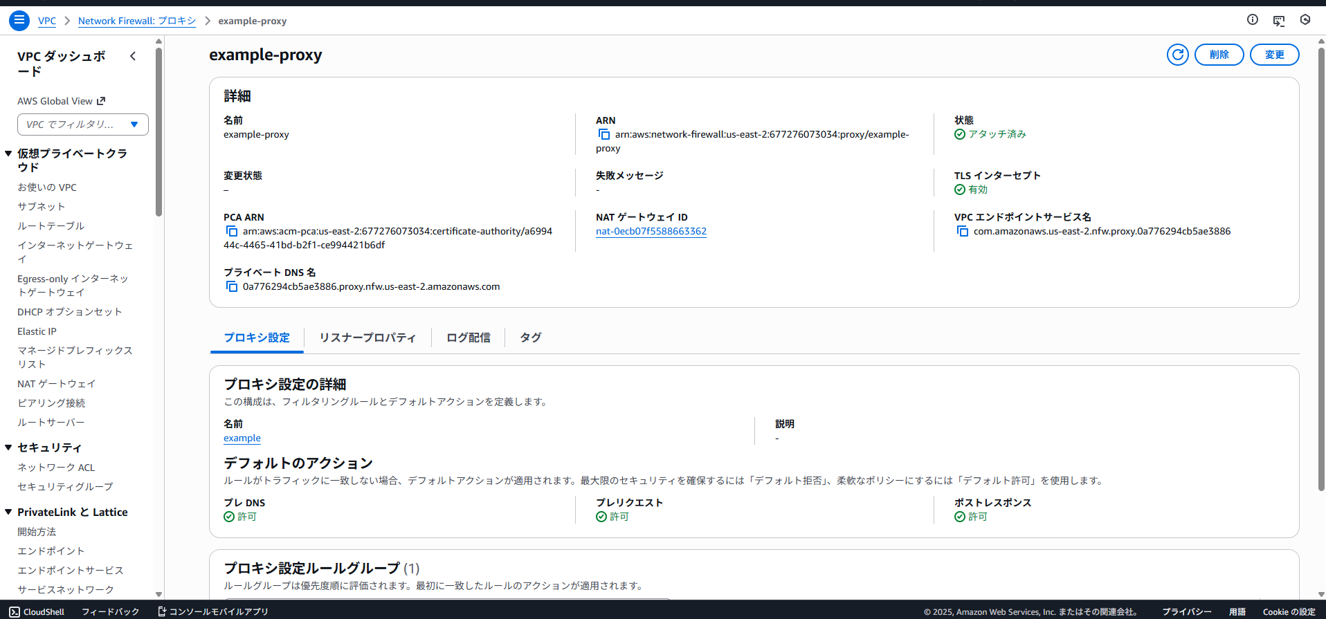 proxy.network-firewall.amazonaws.com、プロキシ名:example-proxy)のみに限定(公式ドキュメント)。